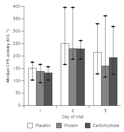 carbohydrate the subjects consumed after their strength training session. And secondly, both CK elevations, as well as muscle soreness are part of the adaptation process, we actually train for. So, if protein & carbs do not reduce these overs signs of an ongoing adaptive response, this does not have to be a bad thing.