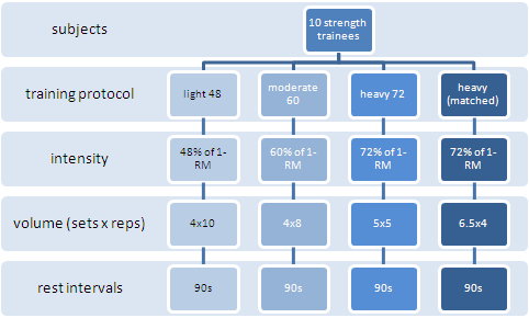 resistance trained young men (22+/-3.6 years) with an average body mass of 84+/-6.4kg, a height of 180+/-5.1cm, and a body fat percentage of 13+/-3.8% - an adequate model of the "average gymrat", if you asked me. After a 3-week familiarization and testing period,