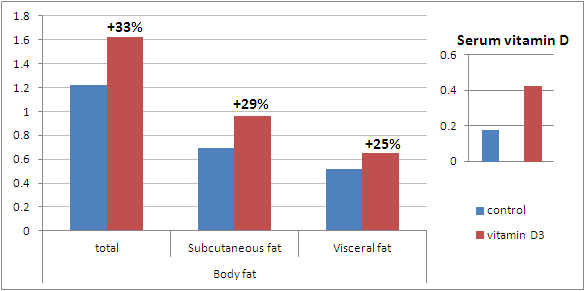 vitamin D3 works it "fat synthesizing" magic by increasing the inflammatory cytokines TNF-alpha and IL-6 and