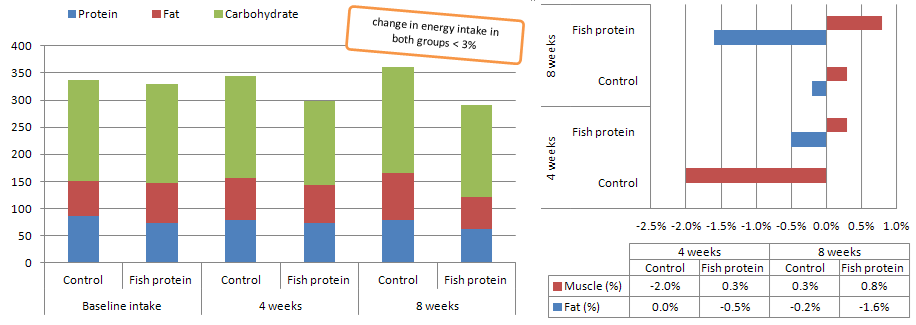 What wanna-be bobybuilders need is protein. Fish protein, to be precise. In 2009, for example, Ramel et al. were among the first to observe that using fish, or more specifically cod protein as the major protein source in the diet of their overweight subjects would yield improved outcomes in terms of fat loss and lean mass retention (Ramel. 2009; see Figure 6).