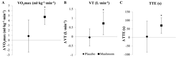To date, research on the ergogenic effects of cordyceps is yet "limited and inconclusive" (Hirsch. 2016) as to its benefits to exercise. This is at least partly a result of the significant differences in study design, where dosage (it appears to take several grams) and duration (the longer the better) are only two potentially confounding factors. "Therefore, the primary purpose of this study was to determine the acute (1-week) effects of a Cordyceps militaris (4 g·d−1) containing mushroom blend on aerobic performance, including oxygen kinetics (VO2max, VT), and time to exhaustion (TTE). A secondary purpose was to explore the ergogenic potential on anaero bic performance (relative peak power [RPP], average power [AvgP], and percent power drop [%drop]). Lastly, an exploratory aim was to evaluate a longer duration (3 weeks) of Cordyceps militaris supplementation" (Hirsch. 2016).To contribute to the existing evidence, Hirsch et al. recruited 28 trained (16 males; 12 females; trained = defined by an average of five hours per week of structured exercise, had been involved in an exercise program (≥ 3 days/week) for a minimum of one year, adults , between the ages of 18 and 35 years of whom all 28 participated in the acute, yet only 10 subjects in the long(er)-term phase of the study.