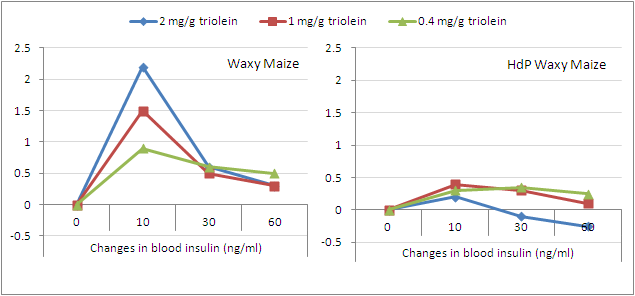 | Figure 5: Insulin response of mice after administration of 2mg/g highly gelatinized regular (left) or HdP waxy