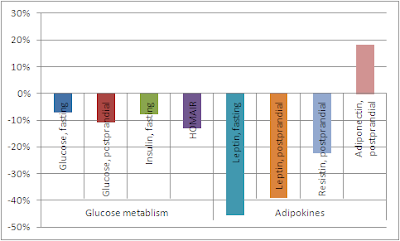 | Figure 3: Changes (relative to cellulose group) in glucose metablism and adipokine expression of HMPC fed rats (data adapted from Islam. 2011). |