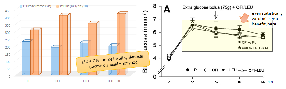 By now even the last bro should know that the natural up and down in insulin is not going to build muscle. The "spike" either leucine or OFI produced in the study at hand is thus not going to make anything grow and the pathetic increase rate of glycogen repletion is 100% irrelevant for the average trainee.