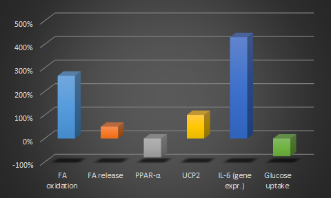 | Effects of 10-trans,12 CLA on fatty acids & glucose metabolism and IL-6 gene expression in isolated fat cells in the petri dish (Hartwig. 2013) |