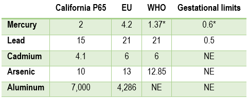 | Table 2: Established toxicant limits in supplements (µg/day). |