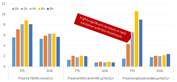 | Figure 2: The increases in oxidation markers in response to a single large fast-food-style (FFS) breakfast counter all potential benefits of intermittent fasting (Devaraj. 2008) |