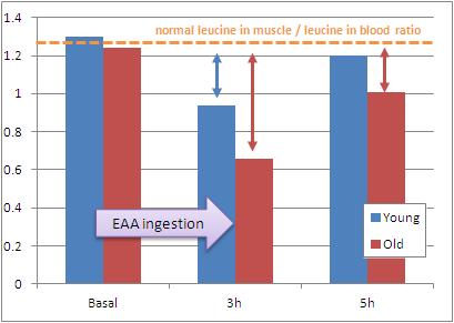 • Figure 1: Ratio of muscle intracellular leucine to blood leucine concentration in response to