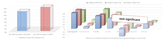 With regard to the correlation (I want to emphasis that we don't have enough evidence to do anything, but speculate about causative effects, here), it may be worth mentioning that the statistical significant association between androgen receptor density and the changes in muscle cross-sectional area was more pronounced in the "strength type" fast twitch (type II) than in the "endurance type" slow twich muscle fibers (0.6, p = 0.002 vs. 0.47, p= 0.023).