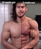 | Figure 1: Lee Priest's transformation is certainly amazing, but let's be honest, do you really want to run around like Michelin man in the off-season and then have to resort to extreme measures to get back in shape for a few days, only? (comparison posted by "Tibo" at the SRTrading Forum) |