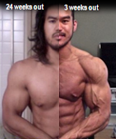 not (and I guarantee that) be able to drop that fat again and achieve the grainy look from figure 1 (right) within a few weeks time before a contest, by diet and exercise (and OTC fatburners), alone...