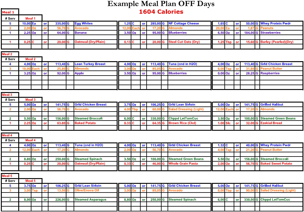 | Table 2: Sample dietary card for a subject during an off, non-workout, day (Dudgeon. 2015). |