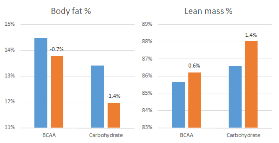 In the strict sense, this is actually no "BCAA study": Some of you may already have realized that the "BCAA supplement" the scientists used, i.e. Scivation XTend, is not really a "BCAA only" supplement. Next to only 7 grams of BCAAs per 14g of powder the subjects ingested before and after the workout, it also contains 1 g citrulline and 2.5 g glutamine and obviously a hell lot of flavorings, fillers and what not. Now, while the latter are not of any importance, both of the former have been heralded as muscle protectors, as well, with citrulline probably having the more convincing scientific data to back it up (it appears to act similar to leucine, by the way | Moinard. 2007; Faure. 2012; Ventura. 2013) outside of scenarios with extremely high glucocorticoid levels where glutamine unquestionably helps (Hickson. 1995 & 1997; Salehian. 2006). It is thus in my humble opinion at least highly imprecise to conclude that the provision of 2x7g of BCAA ameliorated the the fat to muscle loss ratio during the 8-week study.