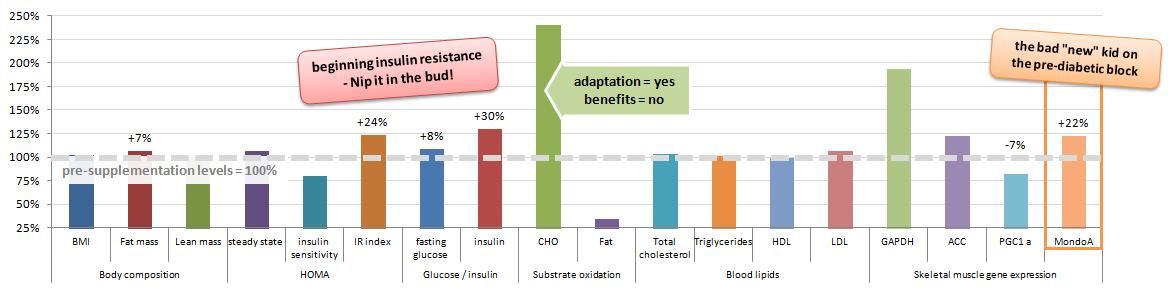 What is most astonishing though, is that you could have these fat loss and muscle gain effects not just despite, but maybe even because you're guzzling HFCS drinks all day (obviously we'd have to have a citrulline + baseline diet group to confirm that). If we assume that the results translate 1:1 to human beings, the one thing you had just ~10g of citrulline per day. Is this possible? Well, it is, but let's be honest with ourselves: The inter-group differences between the control and the citrulline + fructose were not statistically significant. So while there were improvements those were not pronounced enough to be of statistical significance even in rodents. It is thus not really surprising that you haven't heard of citrulline as the "get jacked" amino acid very often... even though, evidence that it can help you to get jacked does exist (more).