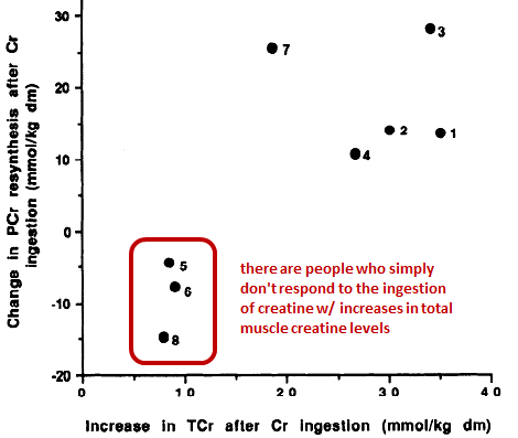 If you are a baby-boomer or who trains regularly and consumes a vegetarian (let alone vegan) diet, on the other hand, your results could be outstanding - "could be" because the study did not test the actual performance benefits, but whether and to which extent the phosphocreatine stores were increased - Plus: It is guaranteed that there's a practically relevant genetic component, as well. I mean, you do remember that the CK response to workouts is also genetically determined and in some so high that your doctor may mistakenly believe you had been run over by a truck and the crushed protein was now clocking up your kidneys, right? | Comment on Facebook!