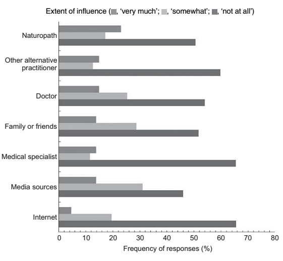 Surprisingly, it's not the Internet that makes people go gluten-free. That's at least what the "wheat avoiders" in Sinead Golley's study claim. For them individuals in their surrounding had a much greater impact on their decision to go gluten free. It's their naturopath, their alternative medicine practicioner, friends, family and, surprisingly, even the doctor. And that in spite of the fact real illnesses (from asthma to IBS) were rare among the "wheat avoiders". Non-wheat food intolerances and allergies, on the other hand, were significantly more prevalent among the wheat avoiders than among their wheat eating (generally healthies) peers.