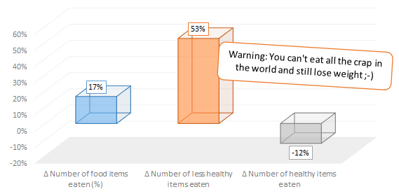 (Un-?)fortunately, you are human and thusly destined to let reason go and fall back to old, oftentimes bad habits. So, there will come a day, when you will be sitting next to your meanwhile "no longer so loved ones" (after all, they are allowing themselves to eat all those jummy junk right next to you at your table ;-) and stare at the twinkies and dingdongs they are indulging. Suddenly a thought crosses your head: "Wasn't there this funky professor who lost a ton of weight on the twinkie diet?" You reach out and, probably much to the secret delight of your "formerly loved ones" who have been jealous of how fast you have been losing weight in the course of the last weeks, grab one of the twinkies that have been waiting for so long for you to take appropriate care of them... I guess I don't have to tell you the rest of the story, do I?