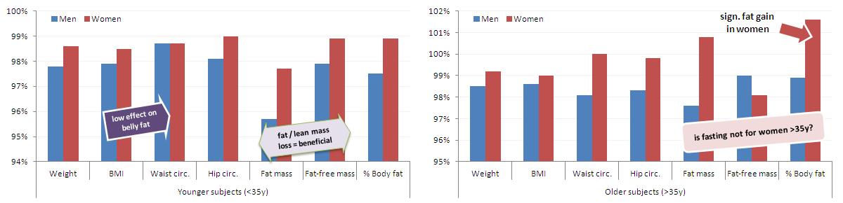 Before we delve deeper into sex-differences, though, I would like to remind you that the individual differences in fat and weight loss are not just better studied than those between men and women, they are probably also much more relevant than any sex difference - and that in spite of the fact that the research suggests that they are mediated by the same (individual) differences in compensatory behaviours that negate the exercise-induced energy deficit as the inter-individual differences.