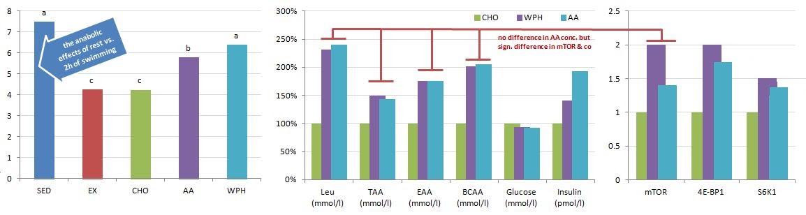 In contrast to their previous study, which was the basis of the discussion in an article I wrote last year (" Don't Judge a Protein by Its Amino Acid Content: 17% Higher Protein Synthesis With Whey vs. Free Form Amino Acids" | read previous article) and where their focus was on mTOR and the fractional protein synthesis (see Figure 1), the study at hand focused focused less on the net effect and more on the underlying (genomic) which explains the fact that free form amino acids suck and whey hydrolysate rules.