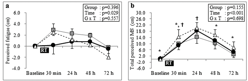 "RET was performed at an intensity of 60-80% of 1-repetition maximum (1-RM) and consisted of 3-4 sets of 8-10 repetitions performed to technical failure during the last set for each exercise. In week 1, 3 sessions were conducted at 3 sets of 10 repetitions at 60% 1-RM. In weeks 1-8, 2 sessions per week were performed at an intensity of 70% 1-RM, where 3 sets of 10 repetitions were the last set was performed to momentary muscular failure. Each session consisted of whole body resistance exercise that lasted ~60-70 min. To reduce the risk of injury and overtraining, one additional training session per week was conducted at 3 sets of 10 repetitions at 60% 1RM with the goal of not reaching momentary muscular failure. These sessions took place immediately before and after the 1-RM training days. In weeks 9-12, 2 sessions per week were performed at an intensity of 80% 1-RM, where 4 sets of 8 repetitions were performed to momentary muscular failure. The 3rd session was performed at an intensity of 60% 1-RM as indicated earlier. Each session consisted of whole body resistance exercise that lasted ~70-90 min. Resistance exercises included flat and incline chest press; leg press, curl and extension; seated pull-downs and rows; calf raises; and abdominal exercises. Participants rested for 1-2 minutes between exercises and individuals sets. 1-RM was directly tested on the chest press, leg press and knee extension" (Reidy 2016b).Participants were allowed to maintain their recreational physical activity but instructed not to do any other strength training outside of the study. To allow for unforeseen life events, participants were given 13 weeks following the familiarization period to complete 36 exercise sessions. This allowed for 100% exercise compliance.