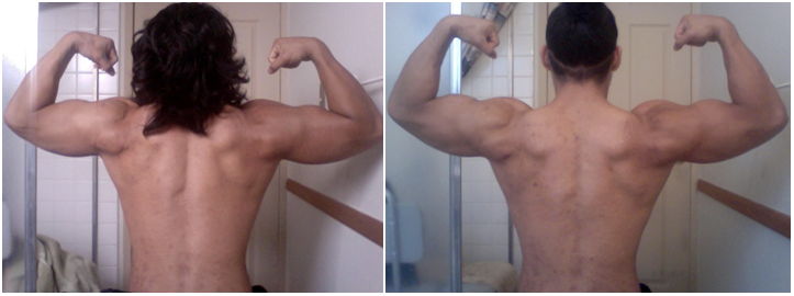 The biggest improvement I have noticed though are related to my back. I don’t know how much of the difference is due to the lighting or maybe just because I put my hair up, ... but I honestly think that I was able to put on some decent size - looks like the switch to an EDT-type training style with all the grueling, but obviously productive compound moves was already paying off…