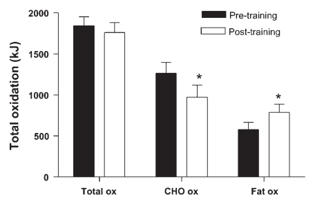actutely a good thing. There's yet more: The intra-muscular phosphocreatine concentrations, the same stuff you wanna boost, when you consume creatine, which were not different before the study, developed very differently over the course of the study. While the intramuscular PCr concentrations increased significantly after 12 days of daily training in the OR-DT group (P<0.05, 69 % increase relative to value before training, described as "Post 1" in the