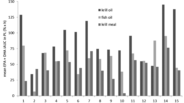 After initial testing, the subjects from both groups ingested the same commercial liquid preparation of high-fat meal of long chain triglycerides. The product is called SuperCal and must not be confused with a vitamin D + calcium product with the same name that is being sold on the US market. From a previous European study, I've got some extra-information about its composition, namely that"[...] 125 ml contains 60 g fat, of which 12 g are saturated, 35.35 g are monounsaturated, and 12.75 g are polyunsaturated. Each 100 ml contains <1 g lauric acid, <1 g myristic acid, 4.8 g palmitic acid, 1.4 g stearic acid, 27.7 g oleic acid, 9.6 g linoleic acid, 1.4 g behenic acid, and 0.5 g lignoceric acid" (Fernández‐Real).The detailed fatty acid composition of the SFAs, MUFAs and PUFAs emulsion that was administered at a dosage of 50 g fat per m² of body surface (calculate your body surface if you want to know your individual equivalent dose = result of your calculation in m² x 50g g/m²; e.g. 1.78 m² x 50 g/m² = 89 g of fat) at 8:30 after an overnight fast is not mentioned in the Martinez-Hervas study. What the authors of the study at hand tell us, however is that the likewise relevant ratio ω6/ω3 is > 20/1 - similar to the average diet, by the way; a fact that excludes that this is an omega-3 effect we are seeing, here. Similarly, exercise or previous meals, shouldn't have messed with the results, either. After all, in both groups, only water was permitted during the "eating" or rather "drinking" process, and no physical exercise was undertaken before or during the "fasted" fat loading test in the AM.