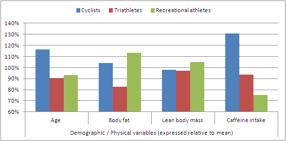 To test each subject against itself while still having averages to compare, the authors had all subjects perform the "W170", a bicycle ergometer ride at a pulse rate of 170 beats/min (duration ~90 minutes until physical exhaustion) on days 1, 2, 3 and four. And here's how the supplementation worked:"Beginning at 6 p.m. on the day before day 1, 5 tablets were administered every sixth hrs. last 5 tablets were given 1 hr before the prolonged exercise test on day 4, see Fig. 1. All subjects were given placebo tablets before the tests on days 1, 2 and 4. Before day 3 active substance was given. The subjects were told that the tests were aimed at elucidating the influence of a vitamin tablet on maximal performance time. No information was given to the test supervisor (the same nurse on all days) or to the subjects as to when placebo or active substance was administered. The placebo and active tablets were identically looking" (Ahlborg. 1968)This is admittedly not exactly standard procedure, and one could argue that what we are seeing here is a vitamin placebo effect, but the effect (a) appears to be a bit too large (see data in Figure 1) and you could (b) also argue that the previous two 170Ws may have had a negative effect on the subjects' performance during cycling to exhaustion.