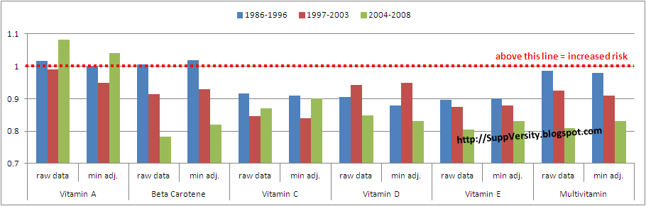 - the 0.80 for vitamin E (raw data) in 2004-08 indicates a -20% decrease in mortality risk