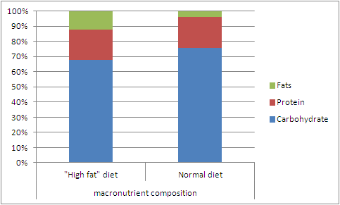 Figure 1: This is probably the lowest fat "high fat diet", I've seen in some time (data adapted from Malik. 2011) - ridiculous, but hey, if the diet had really been "high fat", who knows if the rodents would have gotten obese, anyway ;-)
