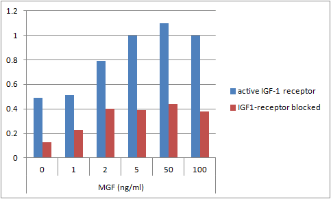 Figure 4: Cell proliferation data in response to MGF treatment after blocking the IGF-I receptor.