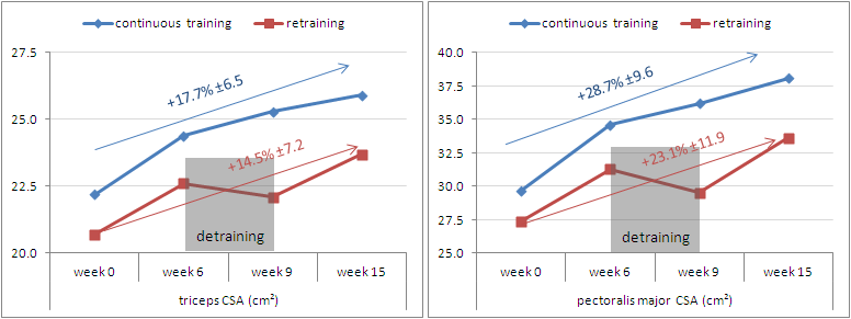 Growing Beyond Limits"). It is thusly likely to assume that, next to IGF-1, testosterone provides a second, secondary or complementary growth stimulus to the otherwise quiescent satellite cells. From the fact that the subjects in the Bhasin study exhibited a marked hypertrophy response in the absence of adequate training stimuli, we may also further conclude that the action of testosterone, contrary to the previously discussed locally expressed IGF-1 splice variants (cf. MGF & Co), does (at least up to a certain degree) not depend on muscle damage / strength training. The results of a 2005 study from the Human Performance Laboratory at the University of Connecticut (Kraemer. 2005), which found a -46% reduction in androgen receptor expression in response to volume (not single set, though) training, would even suggest, that testosterone takes a backseat, whenever the MGF-pathway is doing its muscle building job.