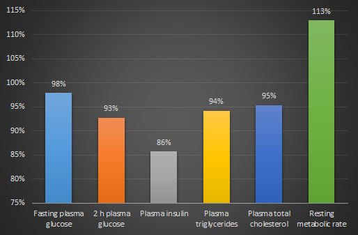 In said study, twenty-five healthy participants (12 males) participated in an oral glucose tolerance test (OGTT) the morning after: (i) accumulating three 10 min bouts of walking the previous evening; (ii) walking continuously for 30 min the previous evening or; (iii) resting the previous evening. Blood samples were taken in the fasted state and for 2 h post-OGTT. The subjects' insulin sensitivity was estimated from fasting blood glucose and insulin using the quantitative insulin sensitivity check index (QUICKI) and in response to the OGTT using an insulin sensitivity index (ISI-Matsuda).