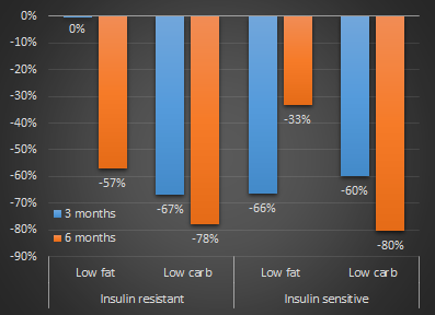 The significant intra-group differences, however, tell us that whether you are or aren't insulin resistant is not the only determinant of your response to the different diets. Especially for healthy individuals experimentation and finding what suits you, your lifestyle and sports best does therefore still appear to be the way to go.